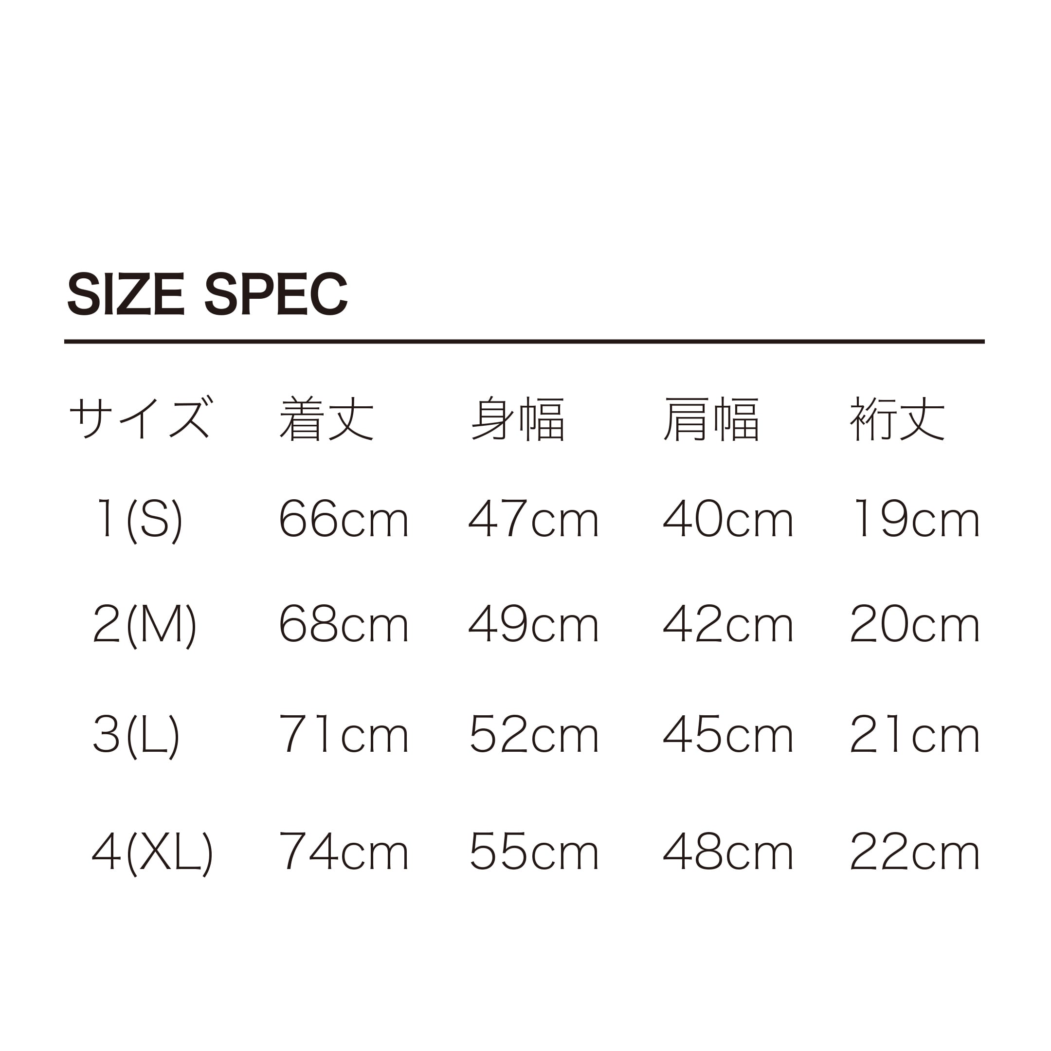 ■サイズスペック(4サイズ展開)